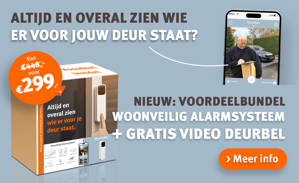 Eenvoudig zelf je huis beveiligen kan met het WoonVeilig Alarmsysteem of met de Woonveilig Beveiligingscamera’s voor binnen en buiten. Aan jou de keuze! Met meer dan 115.000 gebruikers is WoonVeilig, volgens onderzoeksbureau Multiscope, marktleider in slimme doe-het-zelf huisbeveiliging.